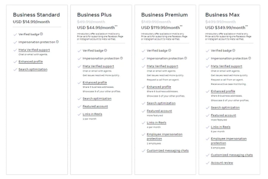 Meta is offering four tiers of options for businesses, ranging in price from $15 per month up to $500 per month. Wow. Yeah. That’s a lot.